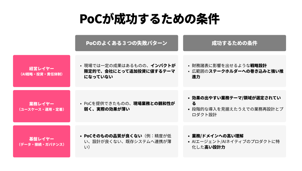 - なぜPoCは止まるのか──よくある3つの失敗パターン