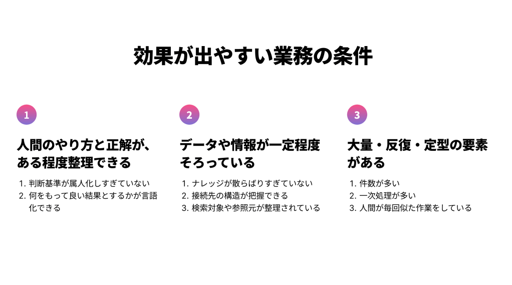 - 効果が出やすい業務には共通点がある