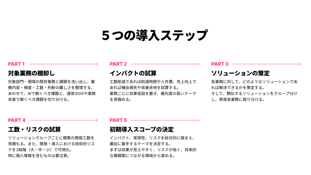 - 失敗を回避し、成果を最大化する「5つの導入ステップ」