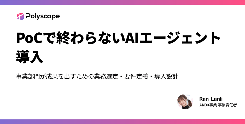 株式会社Polyscapeもまた、単なる「開発ベンダー」としてではなく、お客様の事業をAIで変革する「パートナー」として、この挑戦的なフェーズを共に歩んでいきたいと考えています。